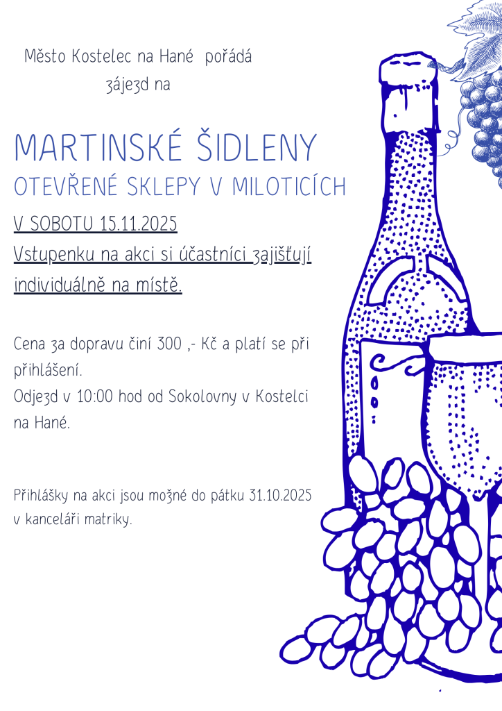 Tradiční podzimní zájezd na otevřené sklepy v Miloticích, který se uskuteční v sobotu 15.11.2025.