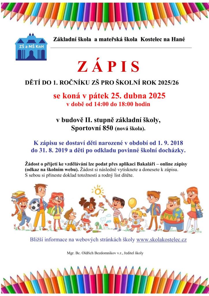 Aktuality - Zápis dětí do 1. ročníku základní školy pro rok 2025/26